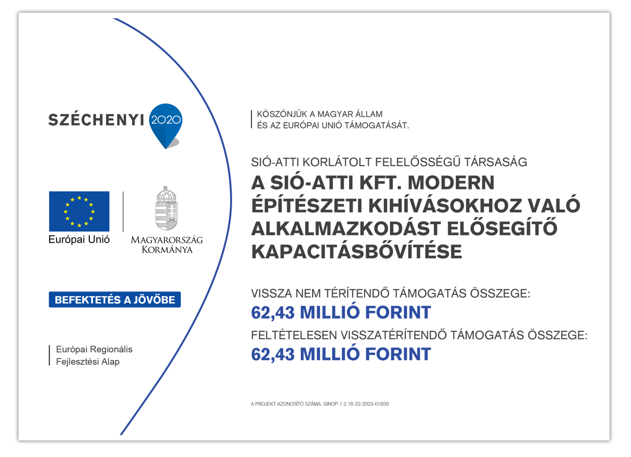 Projekt címe: „A SIÓ-ATTI Kft. modern építészeti kihívásokhoz való alkalmazkodást elősegítő kapacitásbővítése”
